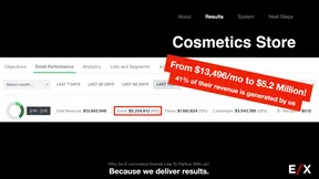 After 20 years of success in direct response internet marketing (and selling 7 figures worth of my own information programs through email), I founded my marketing agency, The Email Experience (E/X), to help DTC ecommerce brands add revenue using a combination of email, FB Messenger and SMS.